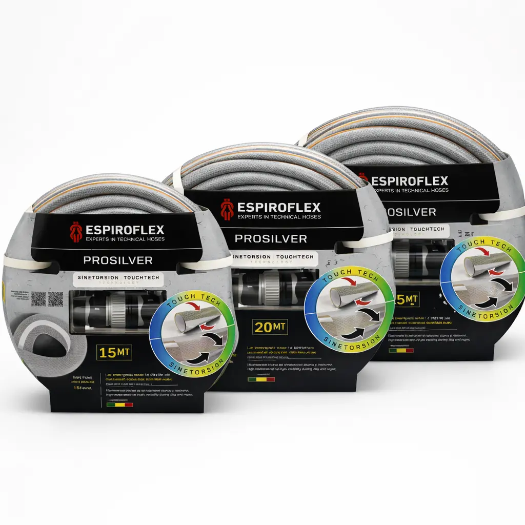 Wielowarstwowy wąż z plastyfikowanego PVC, wzmocniony dzianinową siatką poliestrową, przeznaczony specjalnie do prac ogrodniczych. 10 lat gwarancji. Wewnętrzne wzmocnienie ESPIROFLEX NO TROSION TECHNOLOGY, dzianinowa siatka poliestrowa zapobiegająca skręcaniu się i zaginaniu podczas użytkowania. Bardzo elastyczny i łatwy w obsłudze. Odporny na promieniowanie UV. Dobra odporność chemiczna zgodnie z tabelą odporności PVC.
