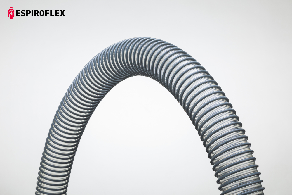 Tubería de poliuretano transparente, base poliéter, reforzada con espiral de PVC rígido antichoque para la aspiración e impulsión de productos abrasivos. Gran flexibilidad (redio de curvatura = diámetro interior). Gran ligereza. Gran resistencia a la abrasión, a la humedad y a los microorganismos. Buena resistencia química, asociada a la tabla de resistencias del PU. Posibilidad de fabricación en base poliéster bajo demanda.