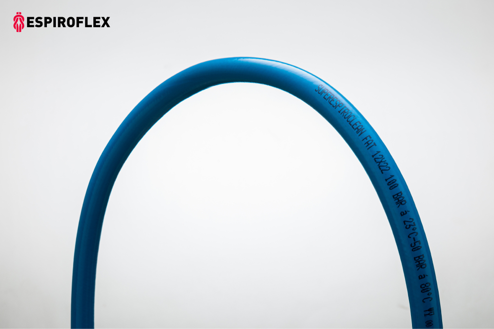 Manguera multicapa de PVC plastificado, reforzada con doble malla de poliester, especial para equipos de aire comprimido a presiones altas. De uso alimentario segun reglamentos europeos CE 1935/2004 y UE 10/2011. Gran flexibilidad, dificil estrangulamiento y alta resistencia al alargamiento.