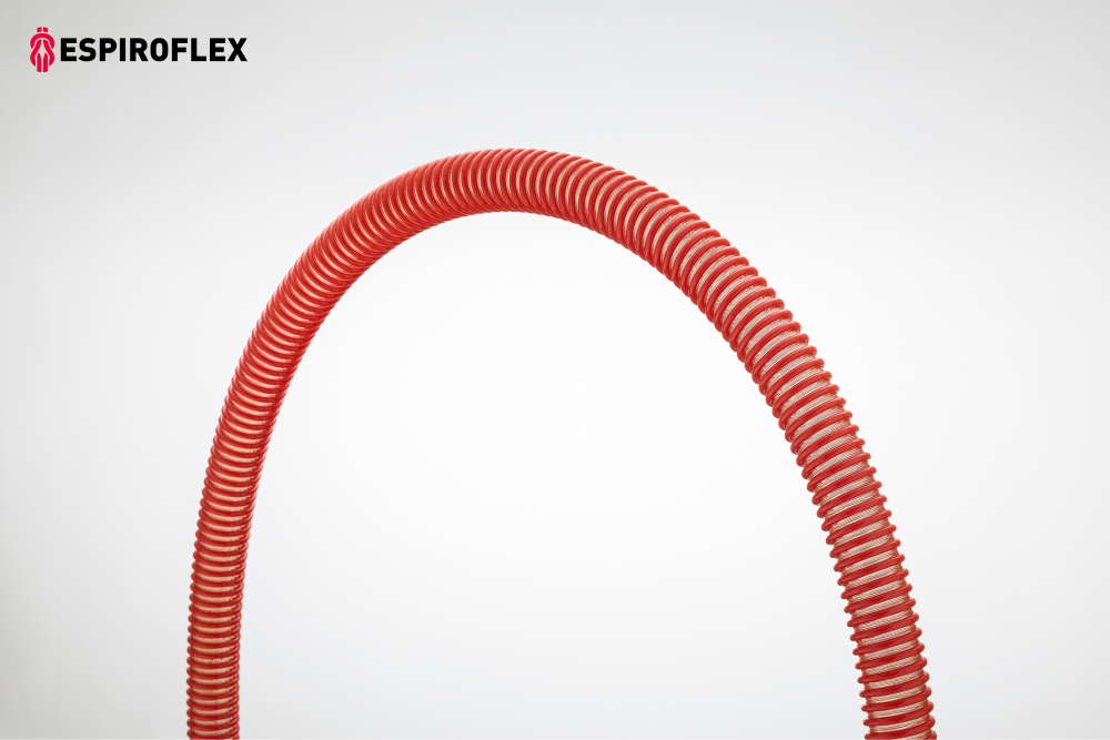 Manguera de poliuretano con espiral de PVC para bombeo por aspiración e impulsión de líquidos con alto contenido abrasivo (ferralla, barro, arena,…). 5 veces más resistente a la abrasión que el PVC. Total flexibilidad (radio de curvatura = diámetro interior) lo cual dota a esta tubería de grandes posibilidades mecánicas. Gran ligereza.