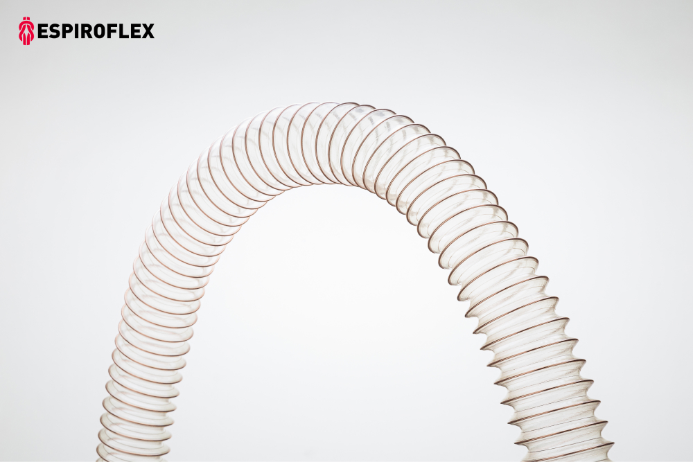 Tubería fabricada con poliuretano flexible y transparente, base de poliéter y espiral interna de acero cobreado con carácter entiestático apta para instalaciones regidas por normativa ATEX, para la aspiración de productos con abrasión media. Gran resistencia a la abrasión, a la humedad y a los microorganismos. Buena resistencia química, asociada a la tabla de resistencias del PU. Posibilidad de fabricación bajo demanda. El producto se suministrará compactado.