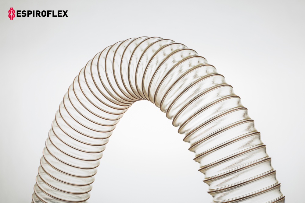 Tubería fabricada con poliuretano flexible y transparente, base poliéster y espiral interna de acero cobreado con carácter antiestático apta para instalaciones regidas por normativa ATEX, para la aspiración de productos con abrasión muy alta. Gran resistencia a la abrasión, a los vapores de productos químicos y con grasas y aceites en su contenido. Buena resistencia química, asociada a la tabla de resistencias del PU. Producto suministrado en rollos.