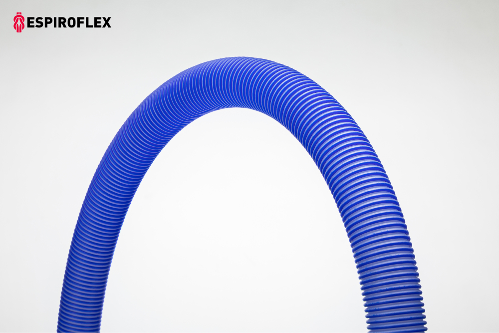 Tubería autoflotante opaca muy flexible fabricada a base de copolímeros de etileno y vinilacetato. Su peso específico de 0,989 g/cm³ aseguran su flotabilidad durante el servicio de trabajo. Su radio de curvatura es de dos veces su diámetro interior. Gran estanqueidad en la adherencia de las boquillas al tubo. Estructura azul con espiral blanca y manguito rotatorio. Muy manejable. Resistente a los rayos UV, al frio y a la rotura en el alargamiento. Fácil manejo en limpiafondos de piscina (manual o automático).