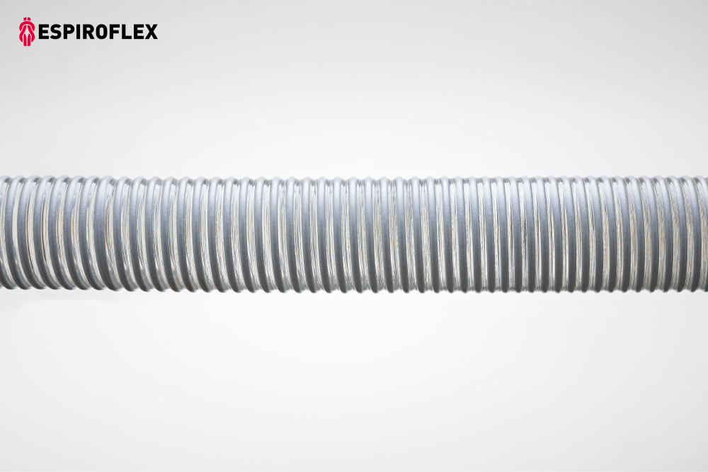 Manguera de poliuretano con espiral de PVC para bombeo por aspiración e impulsión de líquidos con alto contenido abrasivo (ferralla, barro, arena, semillas…). Muy buena resistencia a la hidrólisis.
